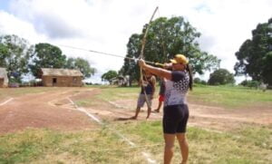 “Hoje, dia 11 de dezembro de 2021, já na reta final, aqui na aldeia Pakuera, terra indígena Bakairi, está acontecendo pela primeira vez, o campeonato de arco e fecha nativo para as mulheres. Nós temos 10 aldeias aqui. Podemos dizer que a aldeia Pakuera foi onde tudo começou, é como se ela fosse a Mãe. As guerreiras Kura Bakairis ainda praticam o arco e flecha nativo, então vocês podem ver que nós mantemos nossa cultura viva!”, contou o pajé Arlindo Rondon.