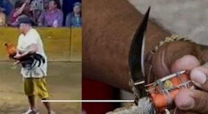 O homem colocou o galo para lutar contra o outro, mas ao invés dele ir pra cima do galo, o animal partiu pra cima do dono e retalhou sua perna com uma espora de ferro.