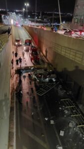 Um motorista de 54 anos perdeu o controle de seu veículo e caiu na trincheira da Avenida Ciríaco Cândia, em Cuiabá, na madrugada deste domingo (15).