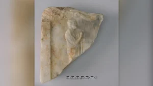 A parte superior de uma estela de mármore – uma laje de pedra vertical com um desenho, muitas vezes usada como marcador de sepultamento na Grécia antiga – é particularmente notável. Na estela, um homem de pé e barbudo está sendo coroado por alguém com uma mão direita musculosa – possivelmente o próprio herói Ajax. Um fragmento de uma coluna de mármore com parte de uma inscrição também foi preservado.