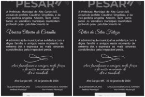 A Prefeitura de Alto Garças (366 km de Cuiabá) emitiu uma nota de condolência, lamentando a morte de dois homens apontados como assassinos do sargento da Polícia Militar, Djalma Aparecido da Silva, executado com mais de 10 tiros, em Pedra Preta, na segunda-feira (22).