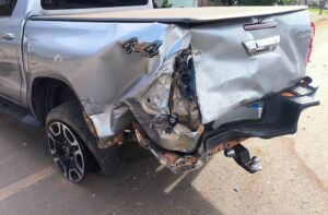 Com o impacto, o Gol acabou capotando e partindo ao meio. Já a caminhonete sofreu danos na carroceria e nos pneus traseiros.