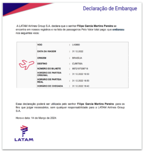 - 14 de março 2024 – Moraes pediu à Latam que confirmasse a viagem de Martins em 31 de dezembro de 2022; a companhia aérea confirmou;