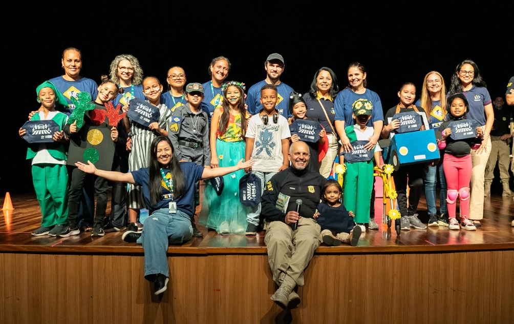 Estudantes matriculados na escola pública de Cuiabá, Ranulpho Paes de Barros, com idades entre 7 e 8 anos, foram protagonistas, na manhã desta terça-feira (30), da peça de teatro “Trânsito Mágico da Cidade Encantada”, apresentada no Cine Teatro. Trata-se da segunda etapa estadual da 20ª edição do Festival Temático de Teatro para o Trânsito (Fetran).