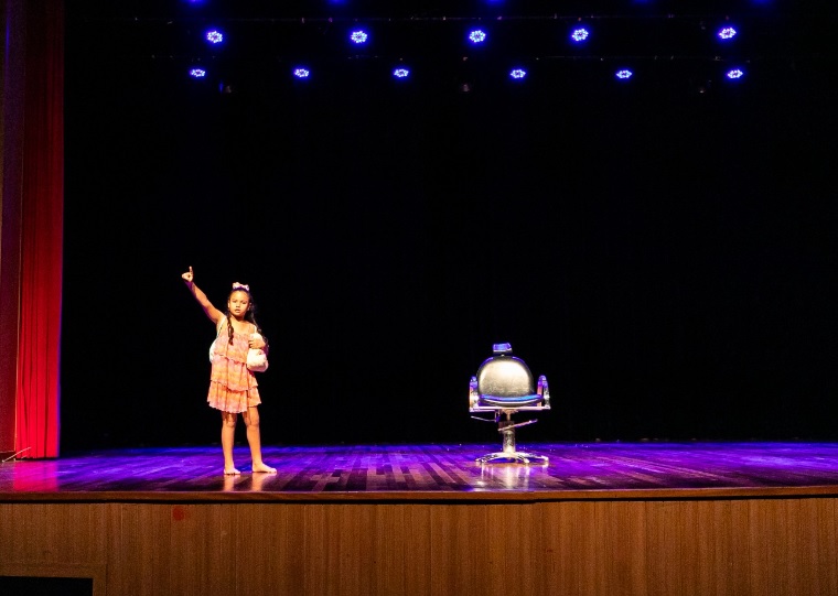 Com apenas 9 anos, a pequena atriz foi aplaudida de pé pela plateia formada por estudantes, servidores da educação e agentes da Polícia Rodoviária Federal (PRF).