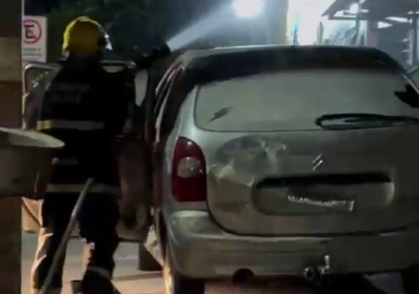 A Polícia Militar conseguiu conter o princípio de incêndio, evitando maiores danos, e em seguida o Corpo de Bombeiros realizou o resfriamento do veículo com jato de água, eliminando o risco de propagação das chamas.