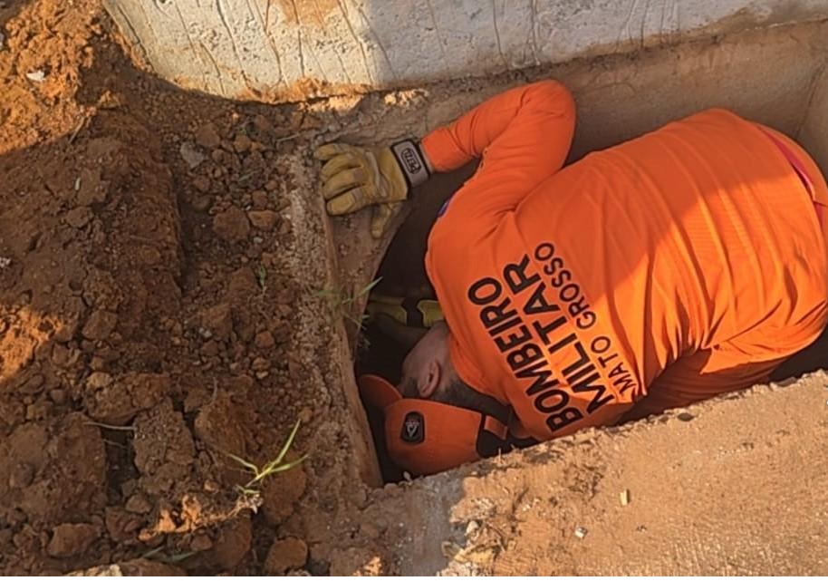 O Corpo de Bombeiros Militar de Mato Grosso (CBMMT) resgatou nesta terça-feira (28.10) um filhote de gato que ficou preso em um bueiro na Avenida Hélio Kolsent, em Confresa (a 1006 km de Cuiabá).