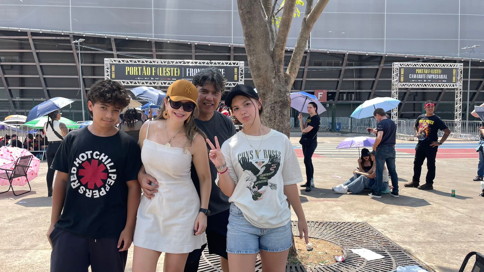 Entre as dezenas de fãs que já aguardam na Arena Pantanal para o show do Guns N’ Roses na noite desta sexta-feira (31), está a família sul-mato-grossense de Keyla e Janer Shinohara, que veio de Campo Grande (MS) acompanhada dos filhos gêmeos Beatriz e Vinícius para ver de perto a banda favorita da família.