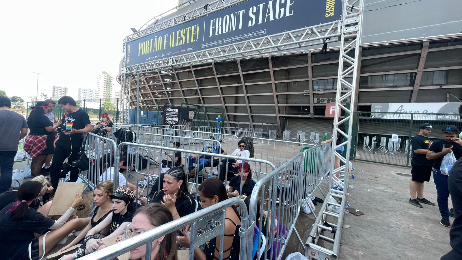 Horas antes da primeira música ser tocada pelo Guns N’ Roses na Arena Pantanal, os fãs já se aglomeravam na entrada do estádio à espera do melhor lugar para ver os astros de perto. A fila tinha até marmitex para matar a fome enquanto os portões ainda não são abertos.