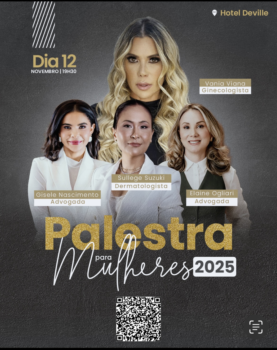 O evento contará com a participação de profissionais renomadas, que abordarão temas essenciais para a mulher moderna. A ginecologista Dra. Vania Viana trará uma reflexão sobre o equilíbrio entre corpo, mente e rotina, com foco em saúde e bem-estar. Já a dermatologista Dra. Sullege Suzuki falará sobre autoestima e autoconfiança como pilares da beleza real e da saúde emocional.