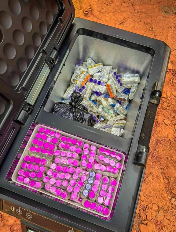 Durante a verificação, o condutor apresentou os produtos sem a devida documentação fiscal e sem autorização da Anvisa. Na vistoria, foram encontrados 15 unidades de Oximetolona 50 mg, 30 unidades de Enantato de Testosterona, 30 unidades de Drostanolona Propionato, 10 unidades de Nandrolona Fenilpropionato, 10 unidades de Metenolona Enantato, 15 unidades de Decanoato de Nandrolona, 10 unidades de Cloridrato de Clembuterol e 1.200 unidades de Tirzepatida, medicamento conhecido como “caneta emagrecedora”.