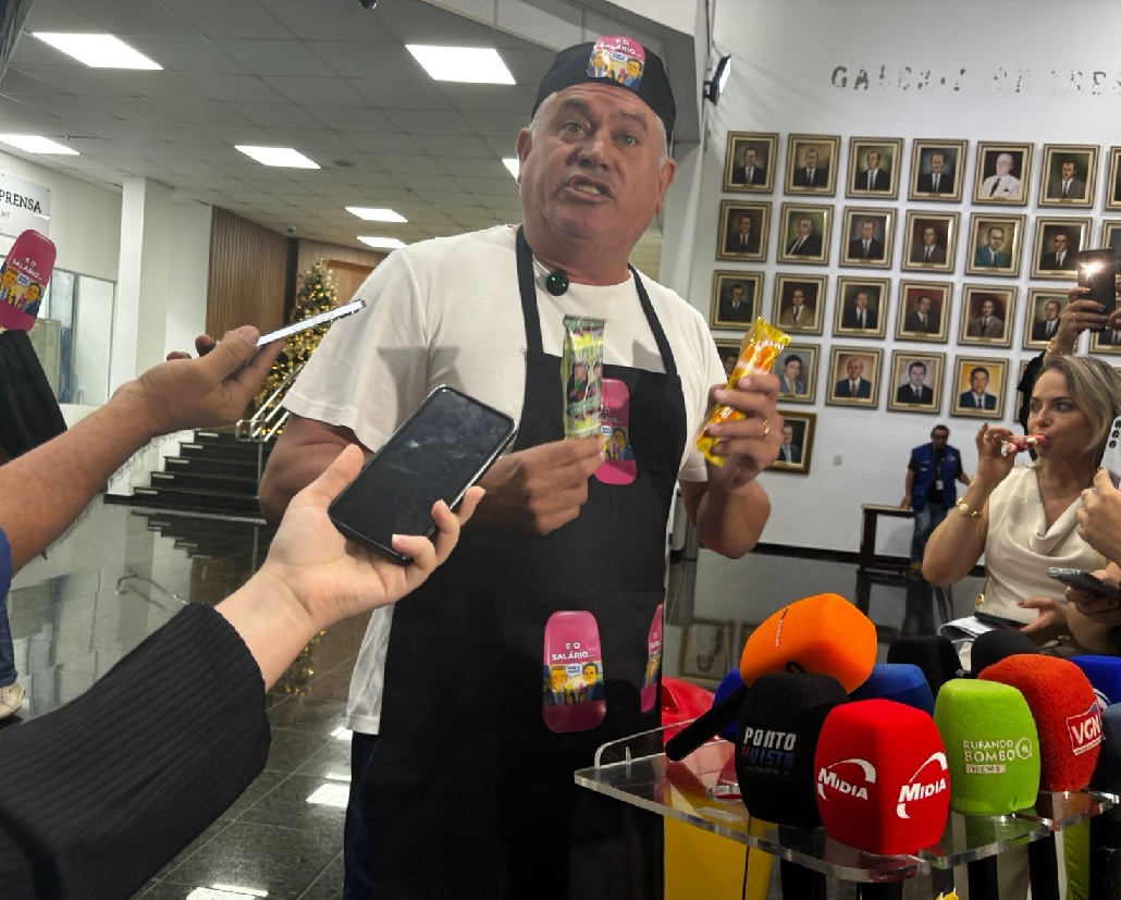 O presidente do Sindicato dos Servidores do Judiciário de Mato Grosso (Sinjusmat), Rosenwal Rodrigues dos Santos, chamou atenção na manhã desta quarta-feira (12) ao comparecer à Assembleia Legislativa de Mato Grosso (ALMT) vestido de vendedor de picolés e distribuindo sorvetes pela Casa de Leis.