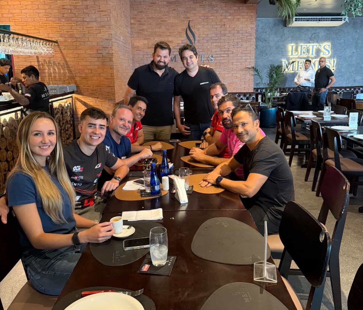 O ex-piloto de Fórmula 1, Rubens Barrichello, foi visto na tarde desta terça-feira (12) almoçando no Meats Grill, restaurante conhecido pela excelência em cortes nobres de carne e pelo ambiente sofisticado, em Cuiabá. Ele estava acompanhado dos também pilotos Allan Khodair e Arthur Gama.