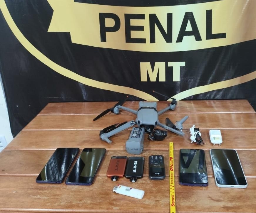 Na ação, a equipe antidrone da unidade localizou e interceptou o aparelho aéreo que sobrevoava rumo ao raio 3 da Penitenciária. Os policiais penais apreenderam o drone que transportava cinco celulares, uma fonte de carregador, dois fones de ouvido, um isqueiro, cigarros eletrônicos e uma serra.