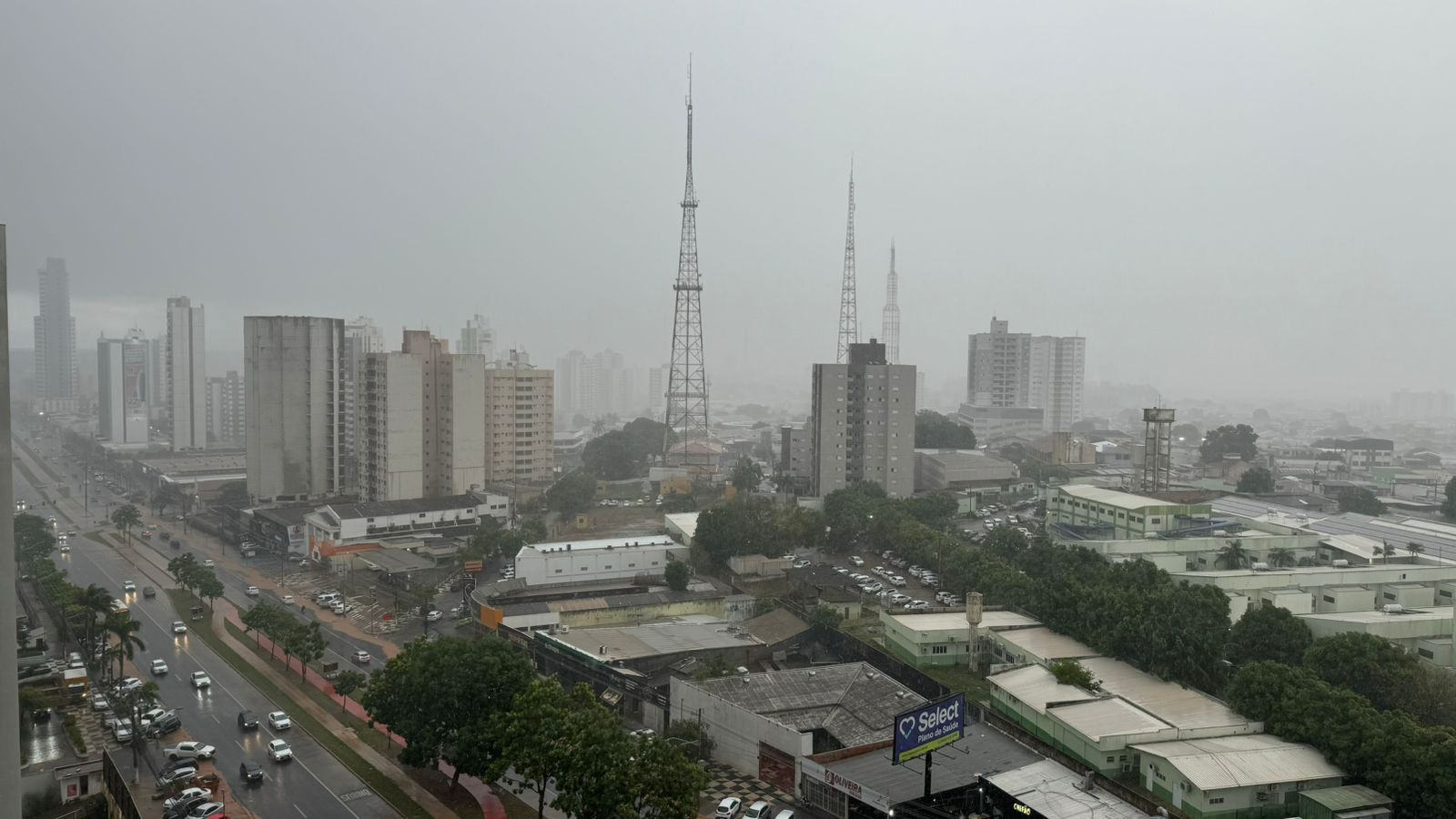 Uma forte chuva atinge Cuiabá na tarde desta segunda-feira (17), acompanhada de ventos intensos e raios. O temporal começou por volta das 15h30.