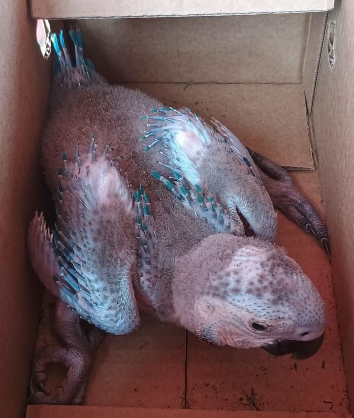 A equipe da 11ª Companhia Independente Bombeiro Militar (11ª CIBM) foi acionada via 193 pelo proprietário de uma chácara próxima à área urbana do município. Segundo o solicitante, a palmeira seca que servia de ninho para a ave caiu devido aos fortes ventos registrados na região, deixando o filhote exposto.