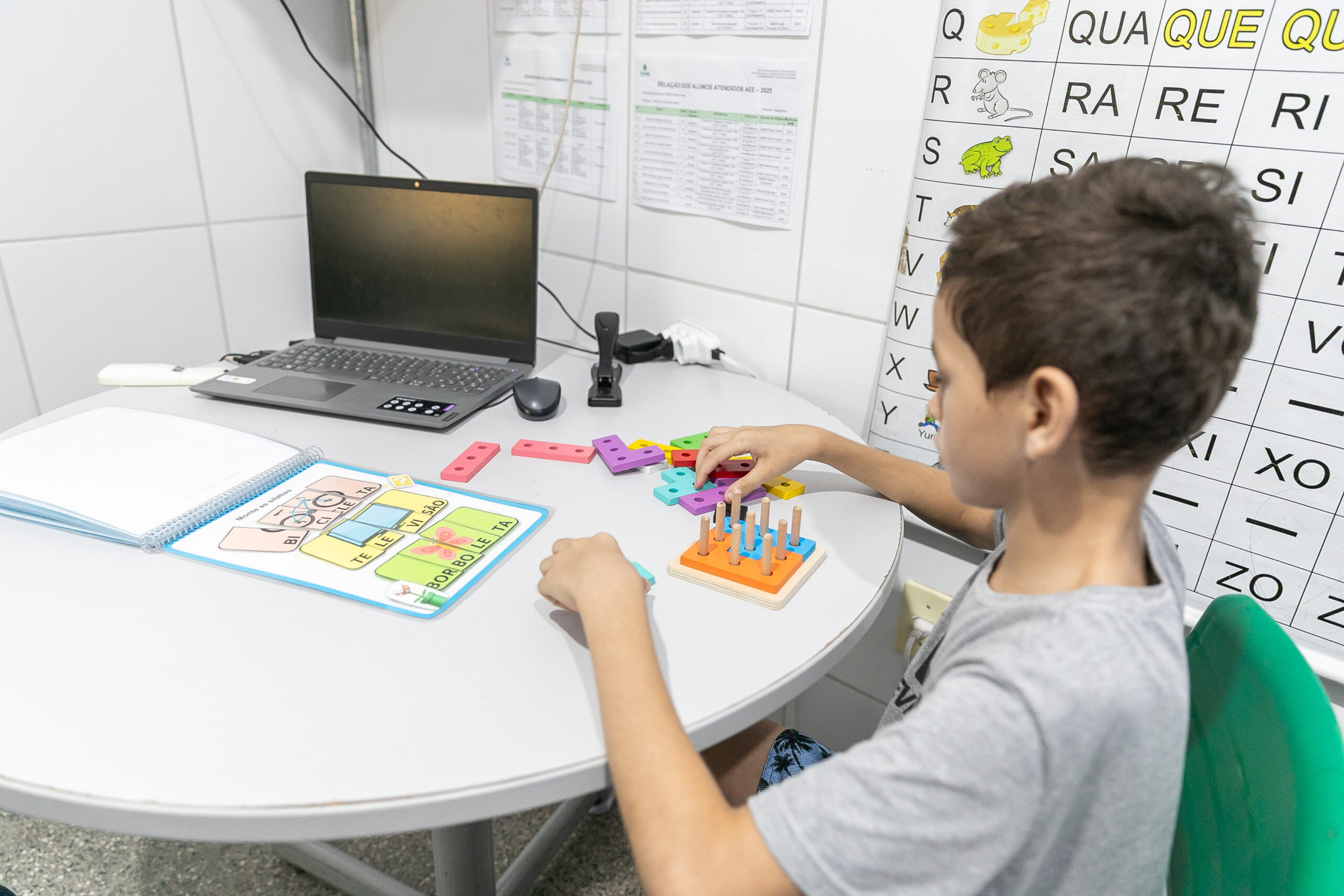 “São muitos avanços. O autismo do Pedro foi desconfiado com 8 meses. Ele não costumava olhar nos olhos. Também era não verbal. Ele faz terapia desde os dois anos. O que a escola proporciona é maravilhoso. Esse material é levado para casa e meu filho fica muito contente e satisfeito. Nós interagimos com as atividades. Esse trabalho tem gerado avanço na fala e nos pequenos gestos, como sorrir”, destaca.