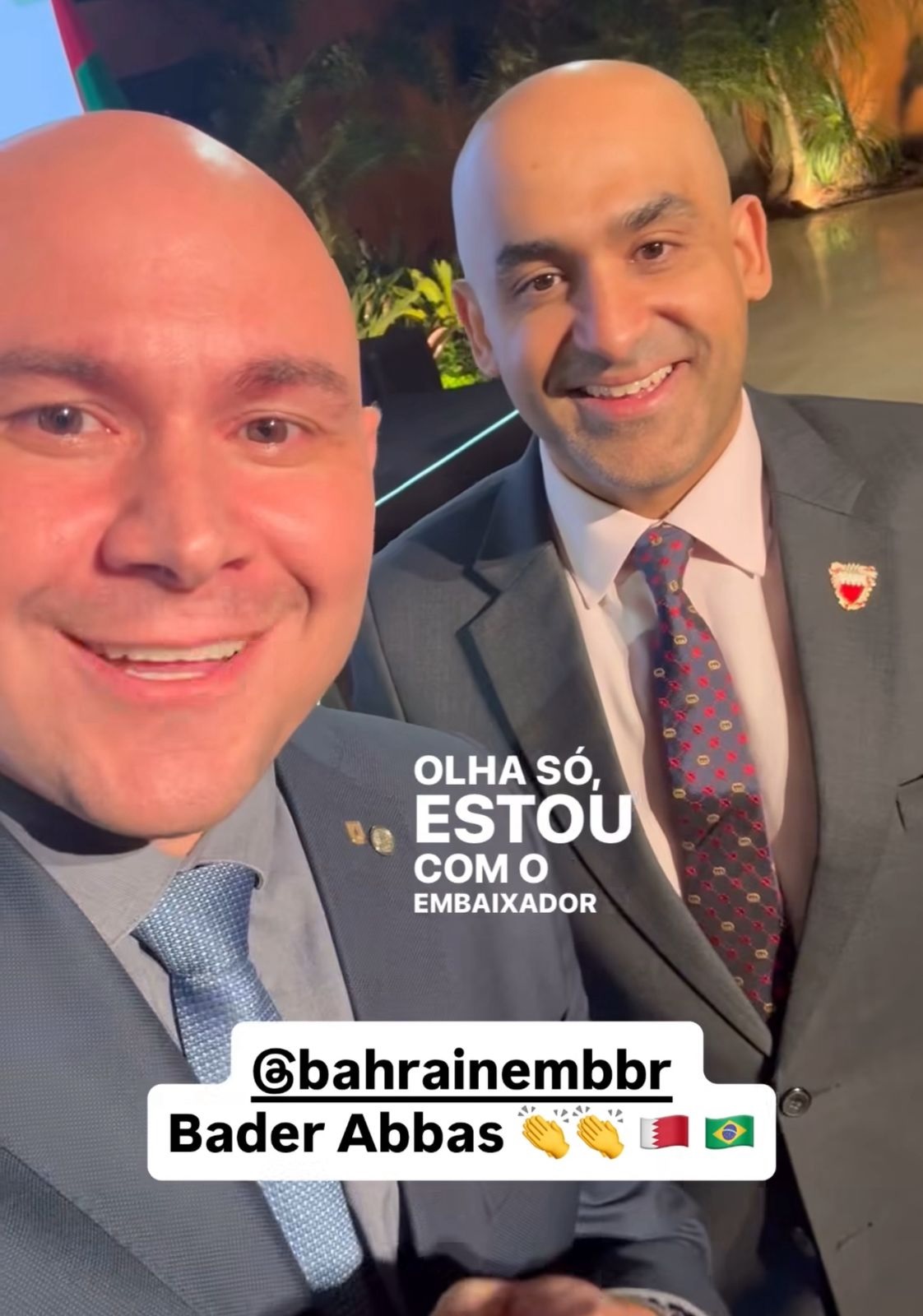 Esbanjando simpatia, o prefeito de Cuiabá, Abilio Brunini, convidou o embaixador do Reino do Bahrein, Bader Abbas Alhelaibi, para visitar a capital mato-grossense. Durante encontro em Brasília, na noite de terça-feira (25), o prefeito apresentou atrativos da cidade e reforçou o convite para que o diplomata conheça o Autódromo Internacional de Mato Grosso, instalado no Parque Novo Mato Grosso, além de experimentar a gastronomia cuiabana – em especial, um tradicional churrasco na capital.
