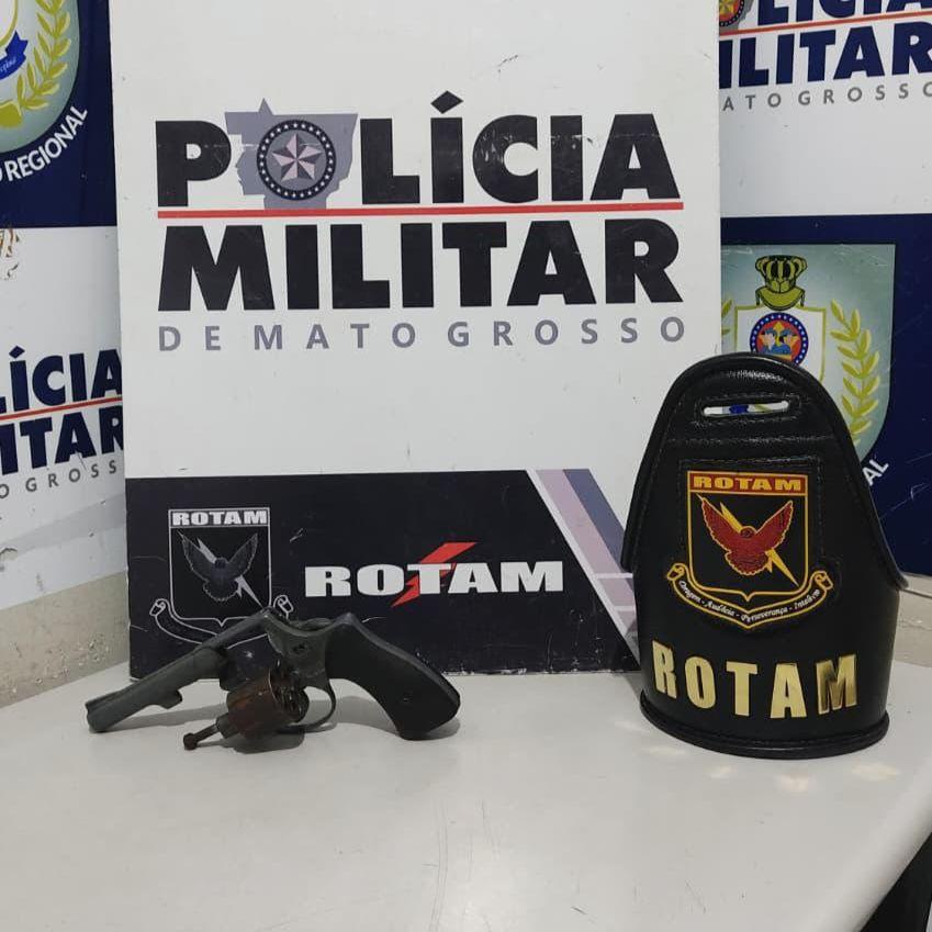 Policiais militares do Batalhão de Rondas Ostensivas Tático Móvel (Rotam) prenderam em flagrante um homem, de 22 anos, por porte ilegal de arma de fogo, na noite desta terça-feira (25), em Cuiabá. Com o suspeito, a equipe apreendeu um revólver de calibre .22.
