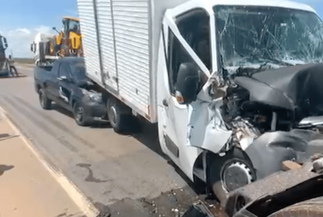 Um engavetamento envolvendo uma Fiat Strada, um caminhão Renault Master e uma carreta Volvo deixou a rodovia parcialmente interditada na manhã desta sexta-feira, no km 763 da BR-163, em Sorriso.