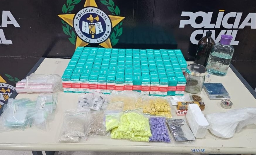 Durante buscas na residência do suspeito, localizada em São Cristóvão, no Rio de Janeiro, os policiais apreenderam aparelhos celulares, diversas porções de entorpecentes, como maconha, cocaína, haxixe e drogas sintéticas como MDA, MDMA e Metanfetamina.