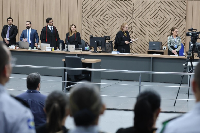 O julgamento envolve o investigador da Polícia Civil Mário Wilson Vieira da Silva Gonçalves, acusado de matar a tiros o policial militar Thiago de Souza Ruiz, em abril de 2023, em uma conveniência de posto de combustíveis próxima à Praça 8 de Abril, em Cuiabá.