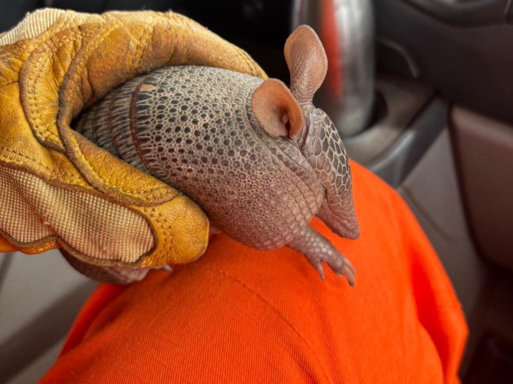 Após o resgate, o tatu-bola foi encaminhado a um veterinário credenciado pelo Estado.
