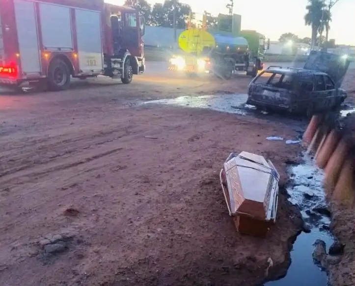 Um carro de uma funerária de Campo Grande (MS) pegou fogo na madrugada desta quarta-feira (7), no km 119 da BR-163, em Rondonópolis (MT), enquanto fazia o translado de um corpo para São Paulo. O incêndio destruiu completamente o veículo, mas a urna funerária foi retirada a tempo e não foi atingida pelas chamas.