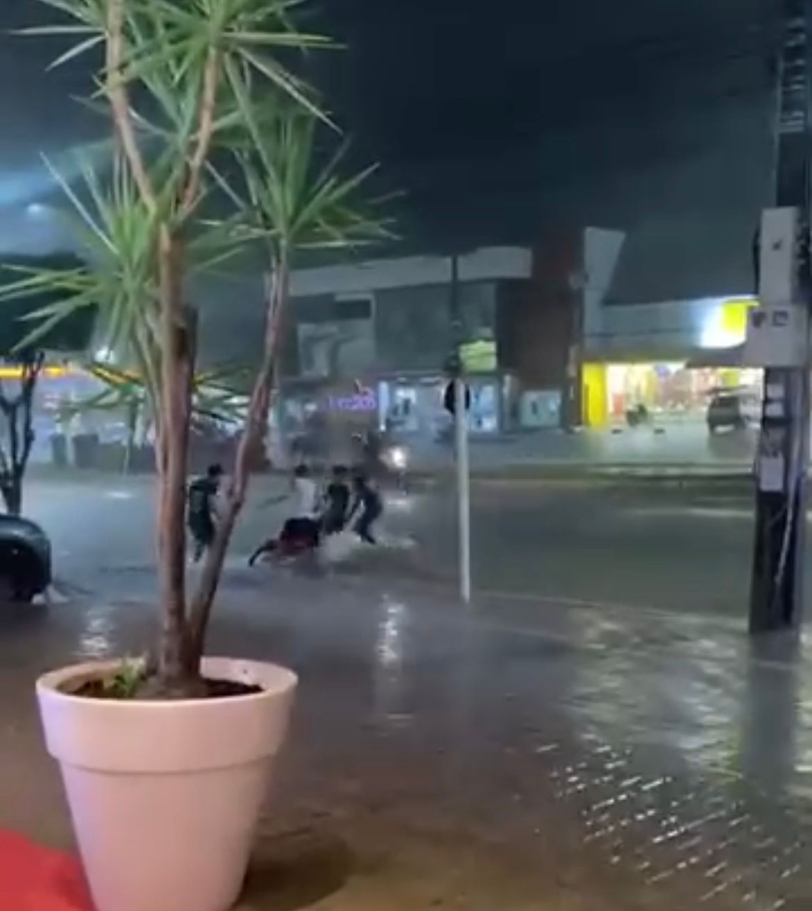 Em cerca de 40 minutos, o município acumulou aproximadamente 106 milímetros de chuva, volume considerado elevado para um curto intervalo de tempo, o que contribuiu para o transbordamento de vias e dificuldades na mobilidade urbana.