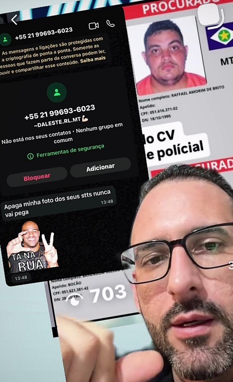 Segundo o policial, Rafael entrou em contato direto com ele após a divulgação de uma foto do foragido, que alcançou 703 mil visualizações. Na mensagem, enviada ao celular do policial, de um número do Rio de Janeiro, o suspeito disse “apaga minhas fotos dos sites nunca vai pega”.
