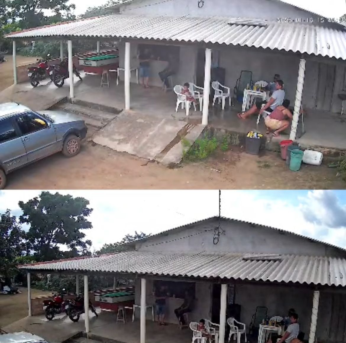 Vídeo de uma câmera de segurança mostram o momento em que o vigia Adriano Queiroz de Oliveira, 34, foi assassinado em um bar da zona rural de Novo Mundo (785 km de Cuiabá), na tarde de domingo (18). Suspeito estava no balcão e surpreendeu a vítima a tiros enquanto ela chegava no local.