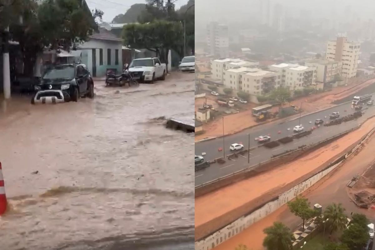 Na Capital, um dos pontos mais afetados foi a região da Avenida do CPA, onde a chuva intensa agravou a situação em trechos que passam por obras do BRT. Vídeos gravados por motoristas registram grande acúmulo de água e lama, com veículos reduzindo drasticamente a velocidade e risco de acidentes.
