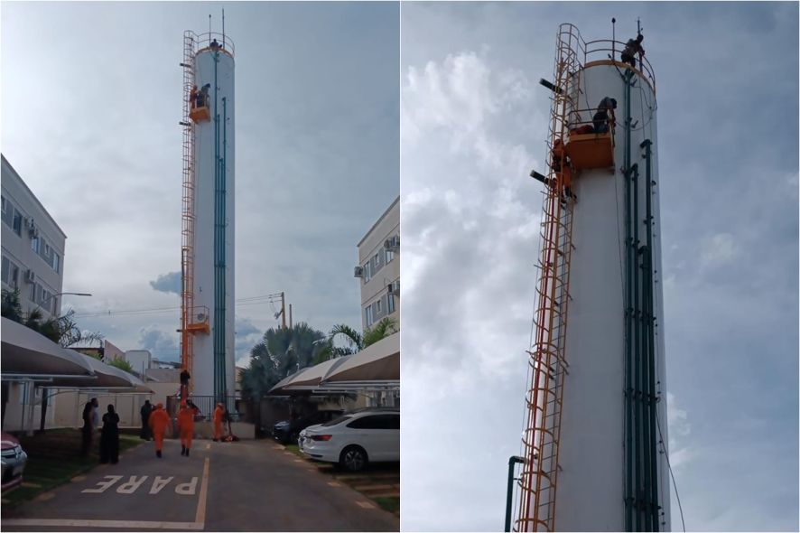 Trabalhador cai em reservatório elevado e mobiliza resgate complexo dos bombeiros em Cuiabá