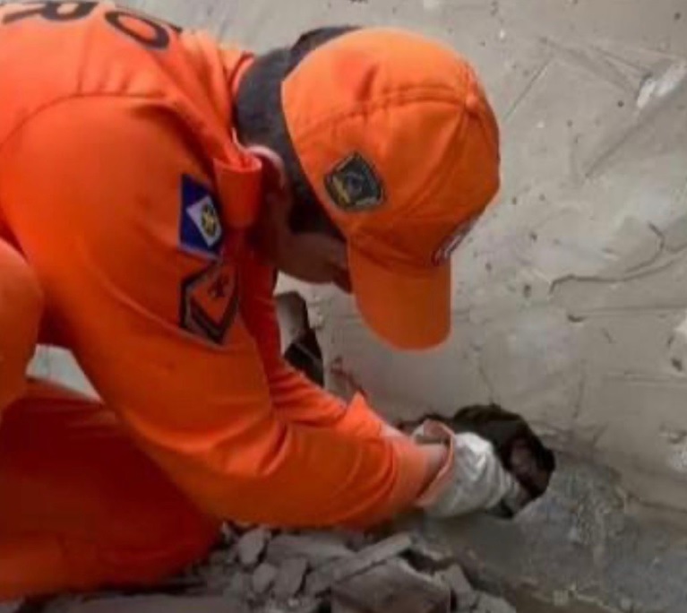 Devido ao difícil acesso, inicialmente foi possível resgatar apenas um dos cães com o uso de cambão. Diante da impossibilidade de retirada dos demais animais por meios convencionais, foi necessária a remoção parcial de um muro, com a utilização de ferramentas manuais, como medida segura para possibilitar o resgate.