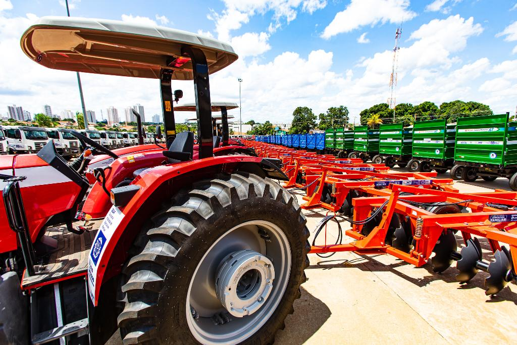 Entre os itens previstos estão mudas e sementes, fertilizantes, corretivos de solo, calcário, embriões, sêmen, barracas de feira, tratores, colheitadeiras, pulverizadores, ensiladeiras, caminhões, veículos utilitários, máquinas pesadas, além de equipamentos como ordenhas, resfriadores de leite, kits de apicultura e caixas de abelha.