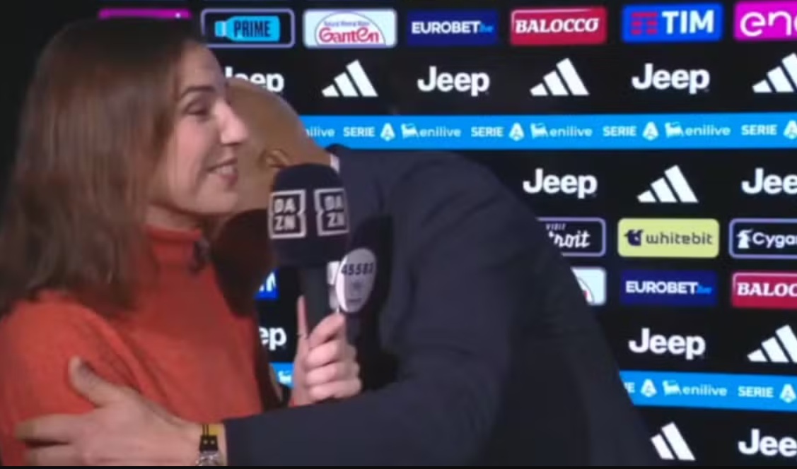 Técnico da Juventus beija repórter para reclamar de lance com VAR; vídeo
