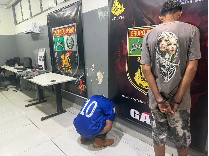 O roubo violento contra um idoso dentro da própria casa foi o ponto de partida para a rápida mobilização da Polícia Militar que resultou na apreensão de dois adolescentes, de 16 e 17 anos, na noite desta quinta-feira (19), em Várzea Grande. Um terceiro suspeito segue foragido.