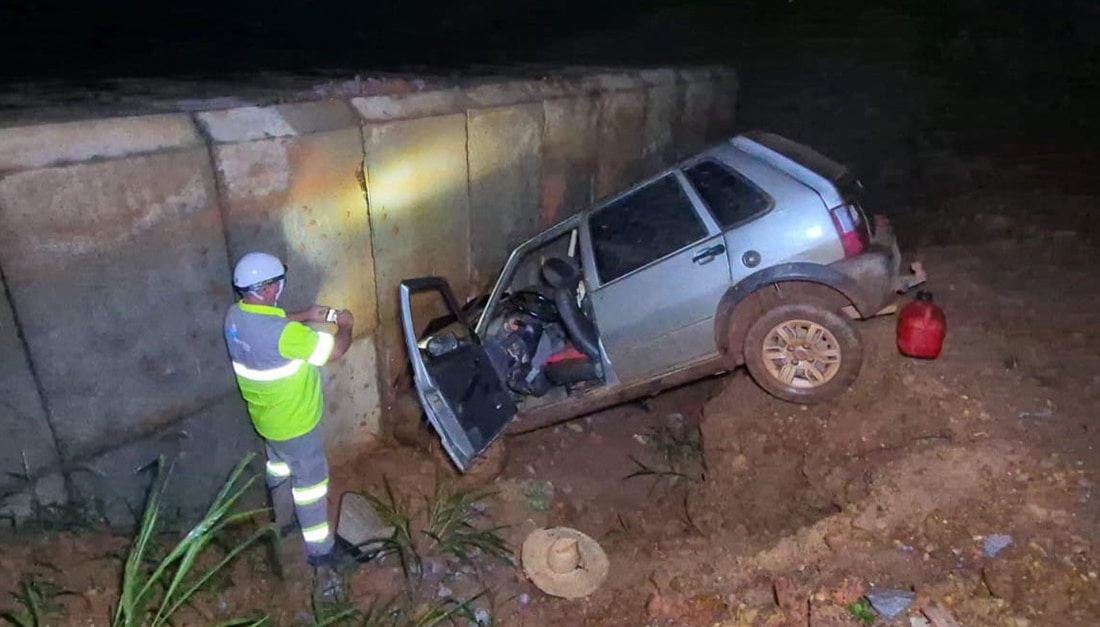De acordo com informações preliminares, o veículo, um Fiat Uno Mille cinza, seguia pela rodovia quando o motorista teria perdido o controle da direção devido à chuva. O automóvel saiu pela margem esquerda da pista e desceu um barranco.