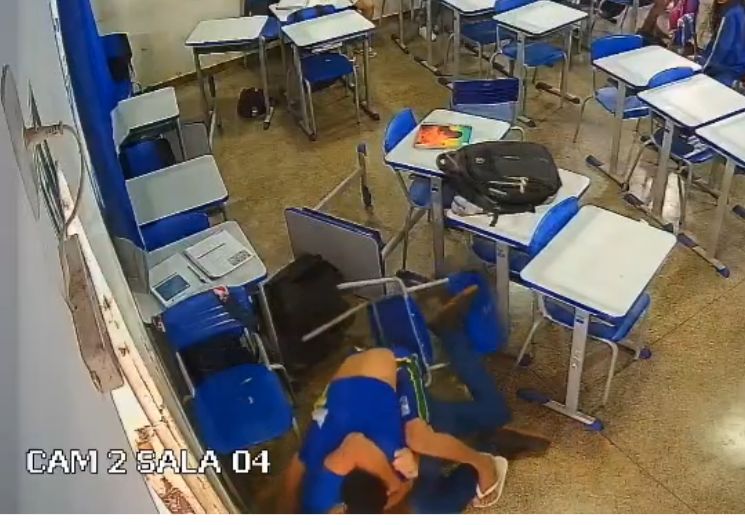 Um adolescente de 17 anos foi apreendido na manhã desta quarta-feira (4) após agredir um estudante de 15 anos dentro da Escola Estadual Milton da Costa Ferreira, em Jaciara (143 km de Cuiabá). A agressão, que incluiu socos e golpes com uma cadeira, foi registrada por câmeras de segurança instaladas na sala de aula.