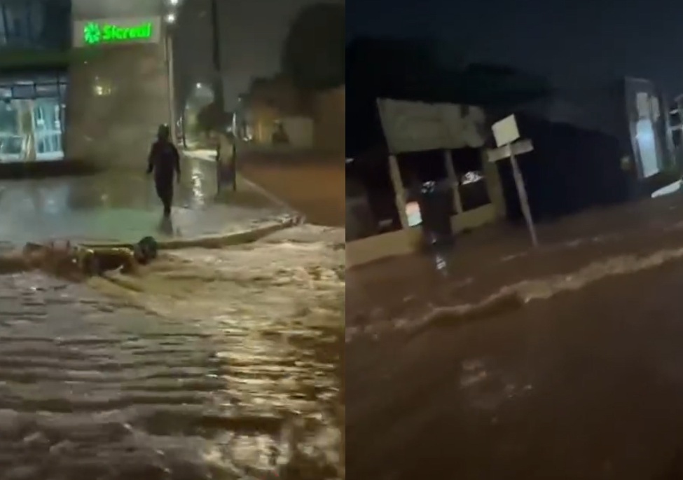 Tempestade alaga ruas, derruba motociclista e destrói estradas em cidade de MT; vídeo