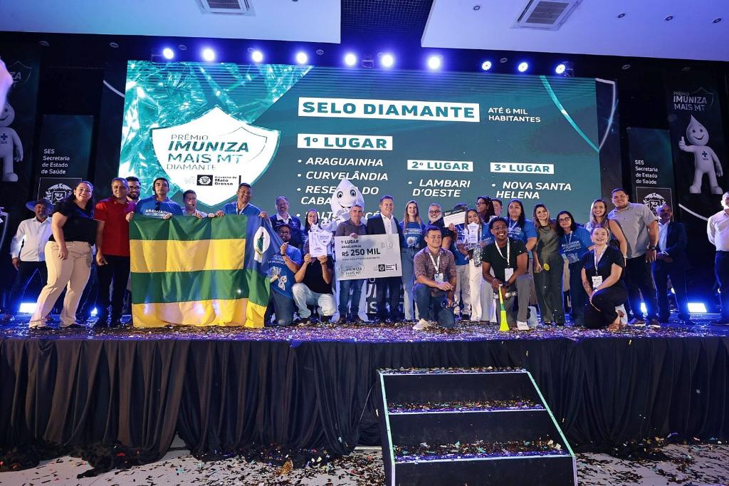 Secretaria de Estado de Saúde (SES-MT) entregou, na noite desta quarta-feira (4.3), prêmios com valores entre R$ 30 mil e R$ 500 mil aos 42 municípios melhor classificados em 2025 no Programa Imuniza Mais MT. Ao todo, foram investidos R$ 6,28 milhões na 5ª edição da premiação.