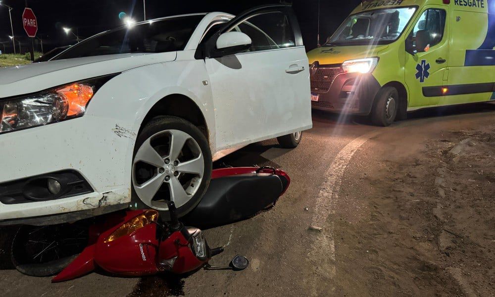 Um acidente envolvendo um carro e uma motocicleta deixou duas pessoas feridas na noite de ontem (25), em Sinop (a 500 km de Cuiabá), no km 819 da BR-163, nas proximidades da estrada Monalisa.