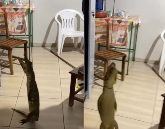 O animal apareceu na cozinha da unidade de saúde e não machucou ninguém. Ele foi contido pelos próprios funcionários, que conseguiram amarrar o jacaré com uma corda e soltá-lo em uma represa da cidade.