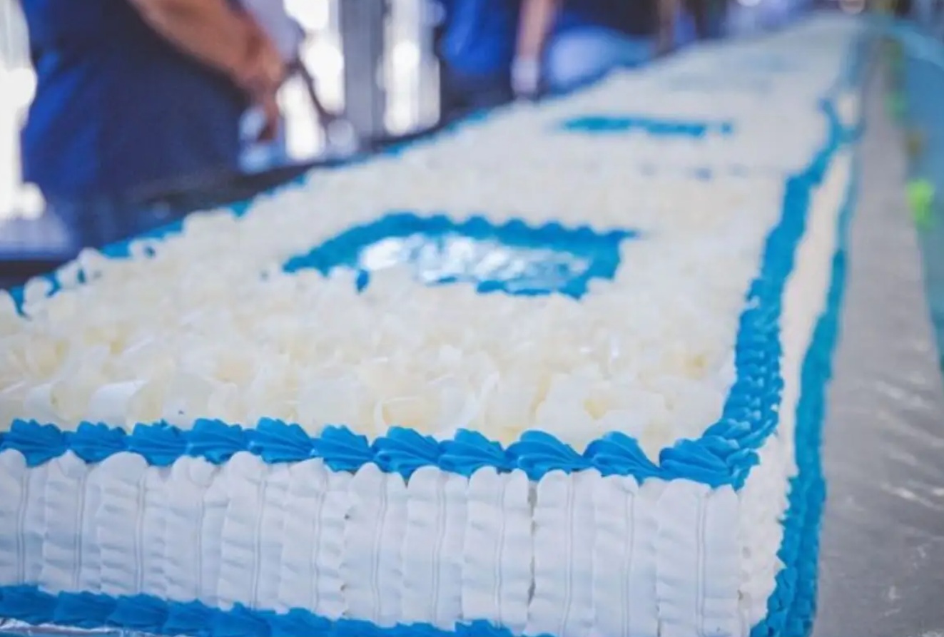 Segundo o edital, para comemorar os 50 anos do município, será distribuído para a população um bolo de 50 metros, com peso de 1.300 quilos e recheio de quatro leites com beijinho.