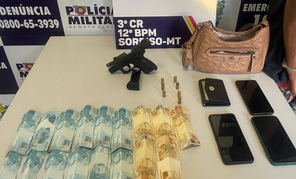 A equipe entrou no local e encontrou uma mulher e dois homens, que foram abordados. Durante buscas, uma pistola calibre .40 com sete munições foi localizada, além de uma quantia em dinheiro.