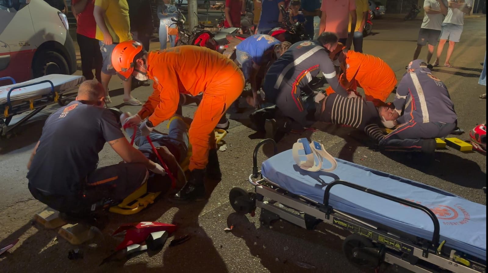 Um dos envolvidos, um motoboy de 28 anos, foi encontrado inconsciente e com traumatismo cranioencefálico (TCE). Ele foi socorrido em estado grave por uma equipe avançada do Serviço de Atendimento Móvel de Urgência (Samu) e levado ao Hospital Regional.