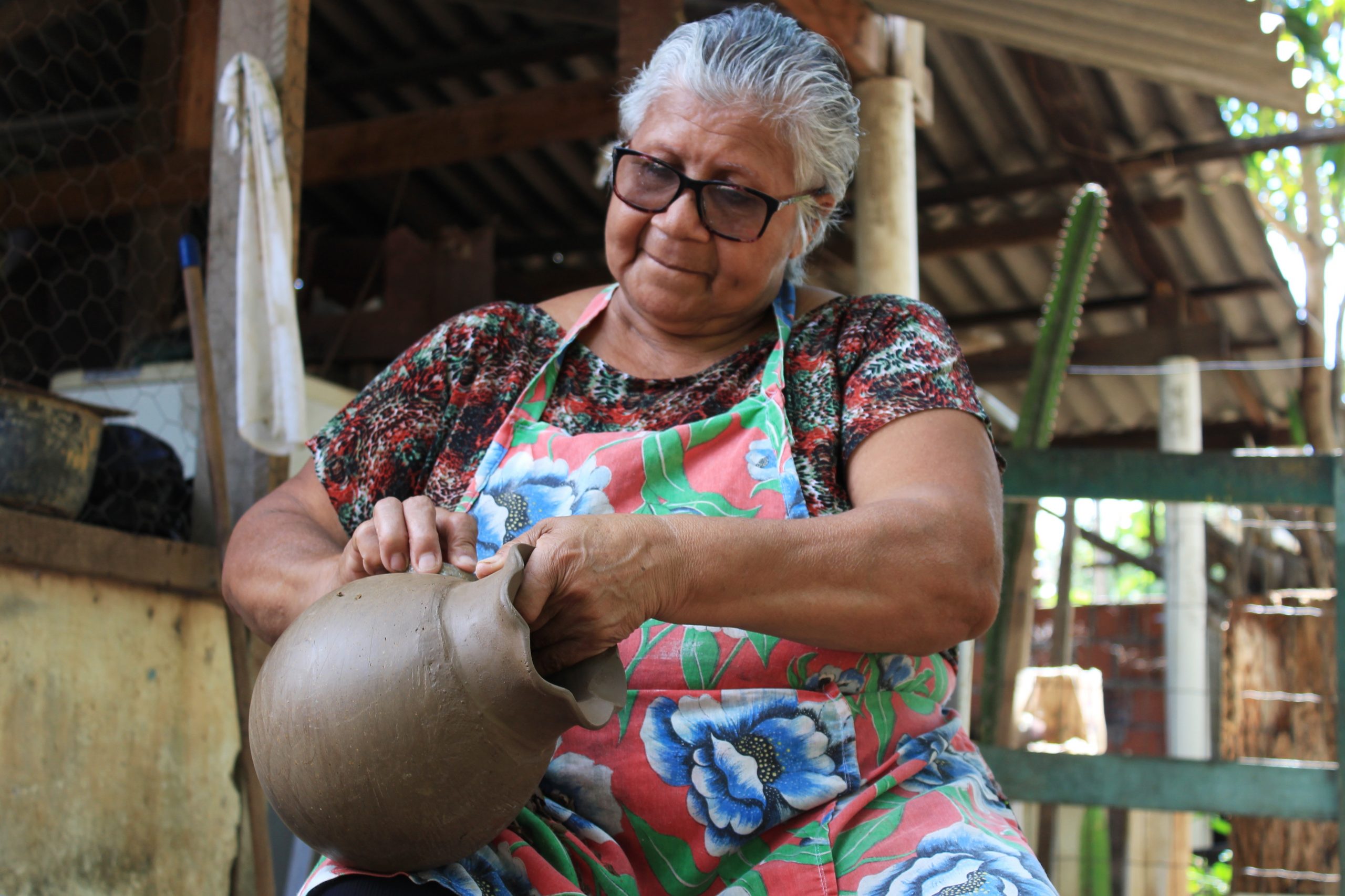 Juracy Marcelina da Conceição iniciou o fazer cerâmico aos 9 anos e, desde então, já se envolveu em cursos e exposições com suas peças. Ela também é uma das fundadoras da Associação dos Artesãos de São Gonçalo Beira Rio, e tem sua renda da cerâmica e do trabalho nas peixarias da família.