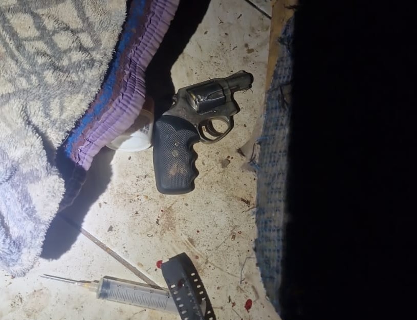 Durante os procedimentos, um revólver calibre .38 foi encontrado, com cinco munições. O caso é investigado pela Polícia Civil.