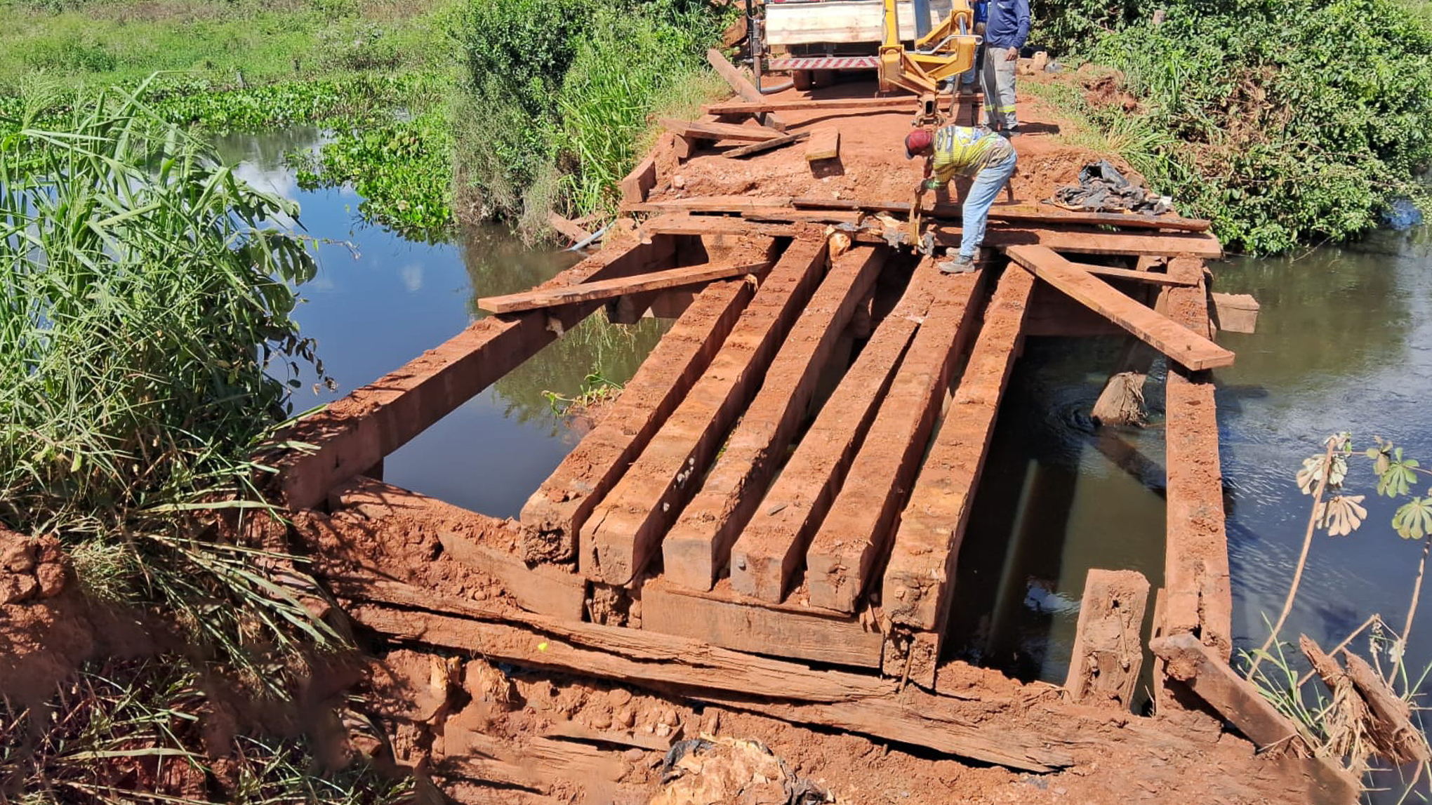 A Prefeitura de Cáceres segue intensificando os trabalhos de manutenção e melhoria da infraestrutura rural, com atenção especial às estradas vicinais e pontes de madeira. Desta vez, a ação acontece na estrada da Soteco, na MT-388, onde uma nova ponte está sendo construída para substituir a antiga estrutura, já removida.