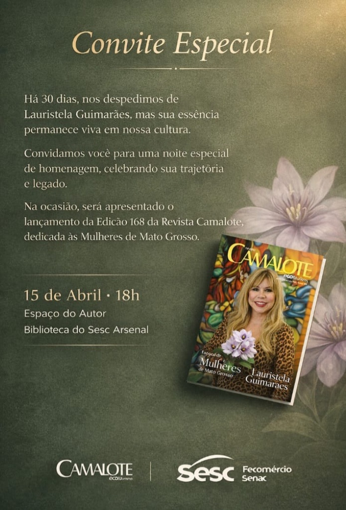 A programação também será marcada pelo lançamento da edição 168 da Revista Camalote, publicação fundada por Lauristela e que, nesta edição, é dedicada às mulheres de Mato Grosso, reforçando o compromisso com a valorização feminina, uma das bandeiras defendidas pela jornalista.